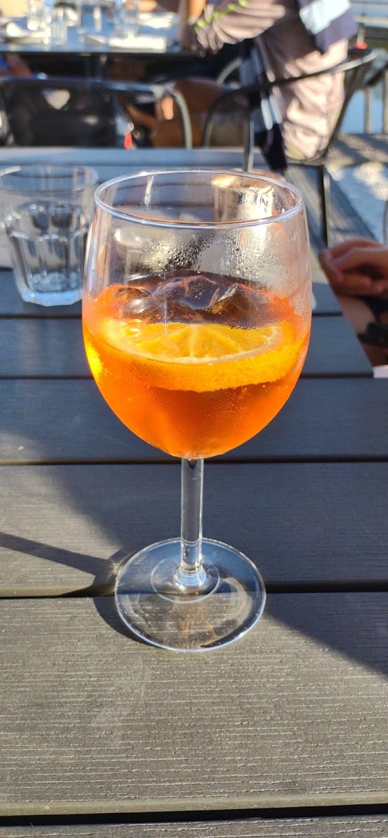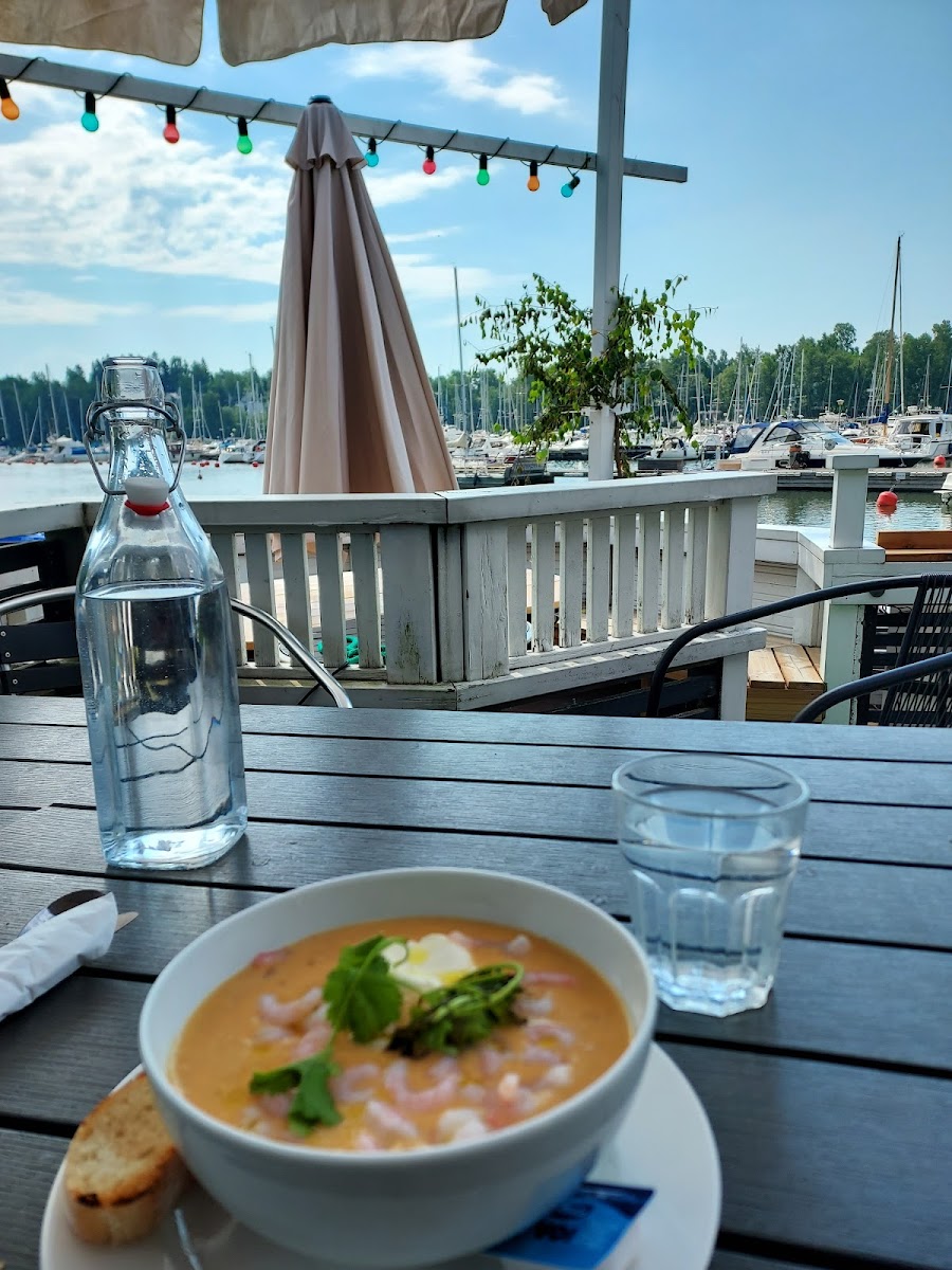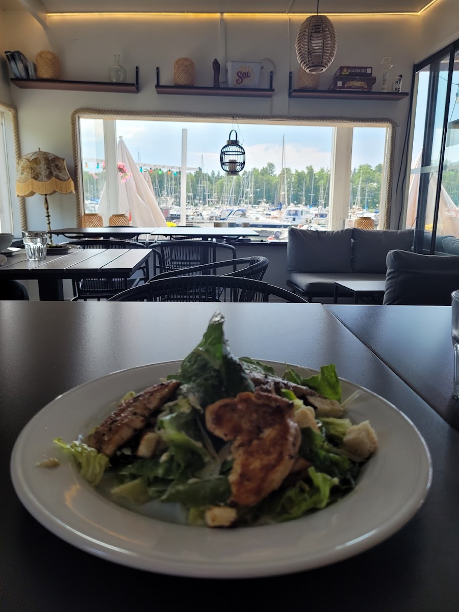 A small feelgood harbor cafe onshore at a small boat harbor. This is really enjoyable place to visit during summertime when weather is fine. Prices aren't too bad and you can get various liquid/solid beverages here - some of them might even contain alcohol. This place is located quite a bit off from beaten path so in practice you are either the user of harbor or random visitor that really want to visit here during your daily routines. I should point out for random visitors that this place isn't open when there's a challenging disturbance in summer weather. And this place isn't open during winter for quite obvious reasons. Service was pleasant and nothing to complain there really. Milieu is really enjoyable with harborish decorative elements and music isn't too aloud. Everything feels quite relaxing here even though there's always something happening at the harbor. Terrace is quite sunny but there's plenty of shadow too if you're not sun worshiper. They don't have coffee milk that's vegetarian friendly e.g. oat milk. In generally the selection here isn't so vegetarian friendly but I wasn't too surprised of this. This is after all a small cafe mainly for harbor visitors. So my overall opion of this cafe was really positive. It's not exactly located well for pop-up or passing by visits because it's at the onshore corner of a harbor but if you're using a bicycle or other vehicle then this place is quite joyable place to visit and I strongly recommend it because it's quite relaxing experience to have.